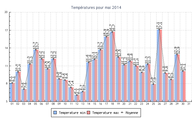 | 13 | 6.7 °C | 6.7 °C | 6.7 °C | 0.0 km/h (0.0 km/h) | N |